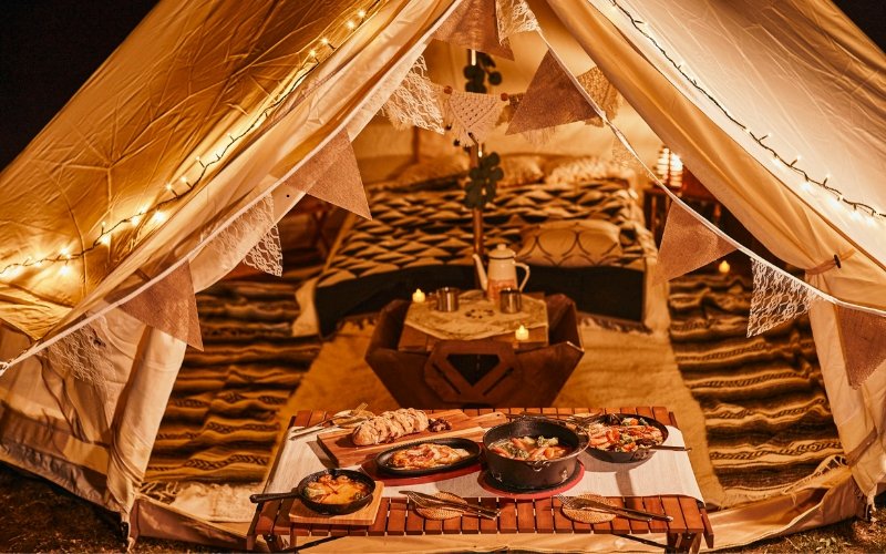Located away from the noise, the camp provides a serene atmosphere surrounded by forests and river landscapes, perfect for relaxation.