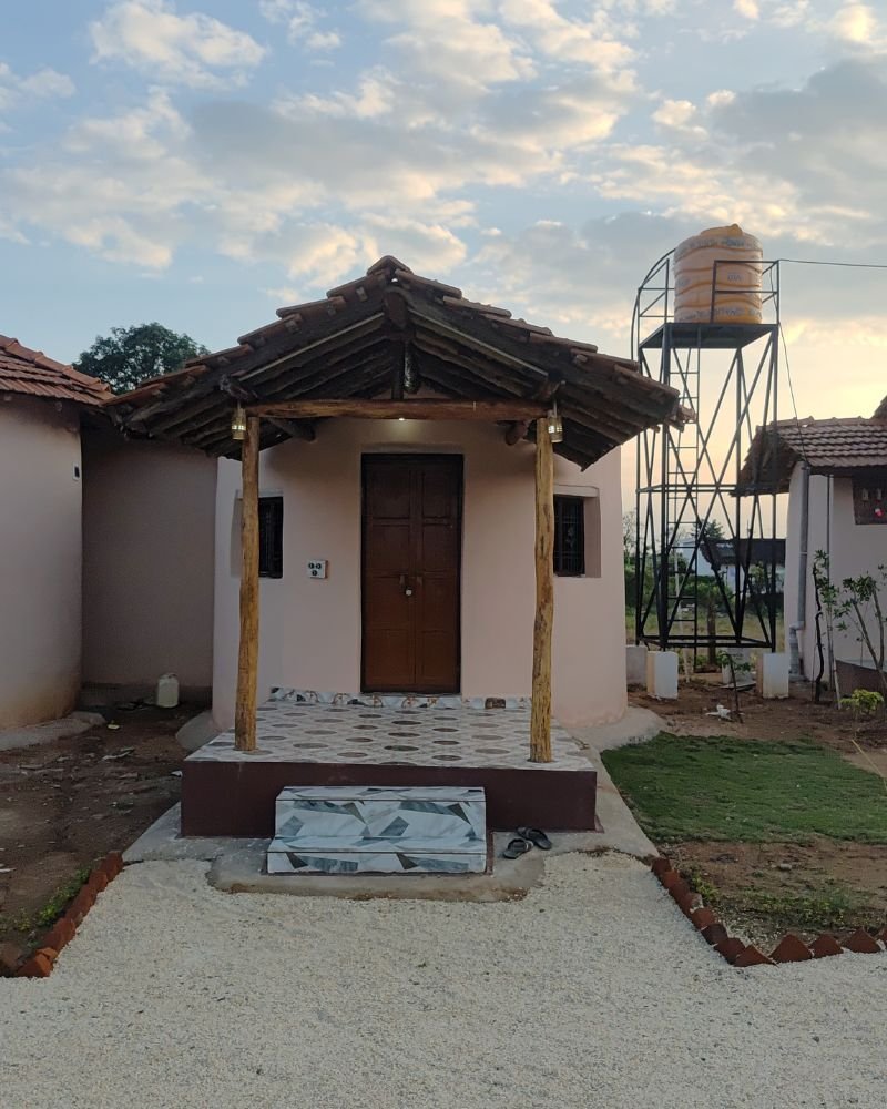 Experience the charm of living in eco-friendly mud cottages that combine traditional tribal architecture with modern amenities.